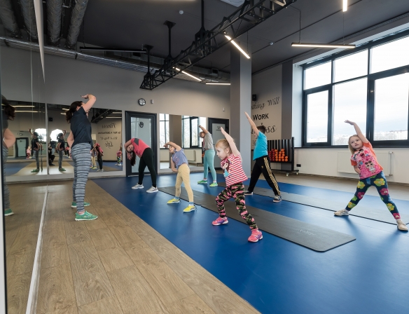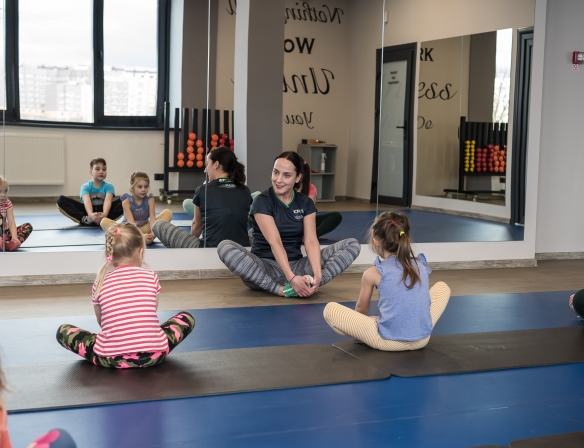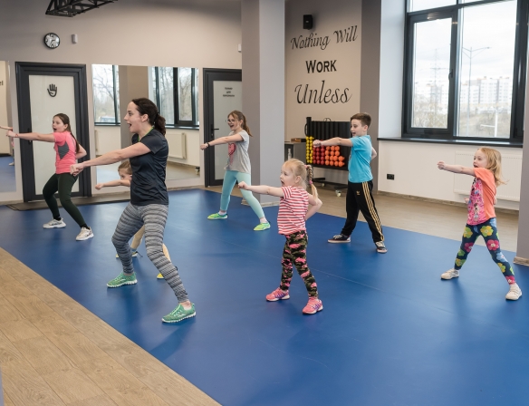 Детский фитнес - это комплексный урок для детей от 3 до 14 лет, направленный на развитие основных физических качеств — силы, скорости реакции, выносливости, гибкости, координационных способностей. Занятия проводятся с элементами подвижных игр и с использованием различного оборудования: мячей, гимнастических палок, скакалок, хопов и др. С детьми подросткового возраста занятия проводятся в тренажёрном зале.